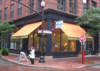 Storefront awnings are a powerful branding tool that enhances curb appeal while providing practical benefits for businesses. Customizable with logos, colors, and designs, they create a strong visual identity that attracts customers and makes a business stand out. Beyond aesthetics, awnings offer shade and weather protection, making storefronts more inviting and comfortable.
