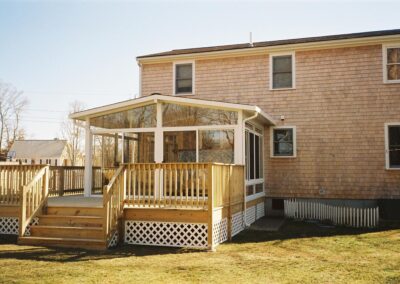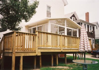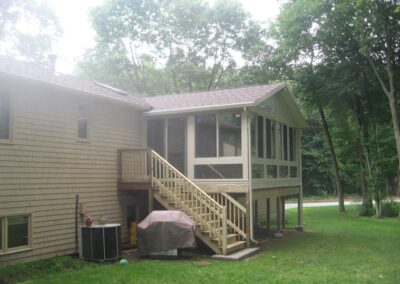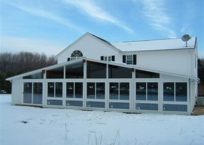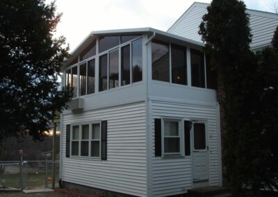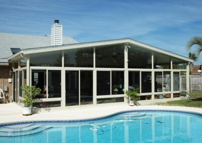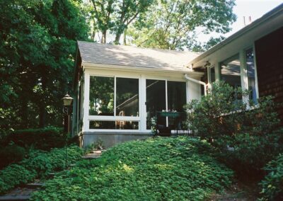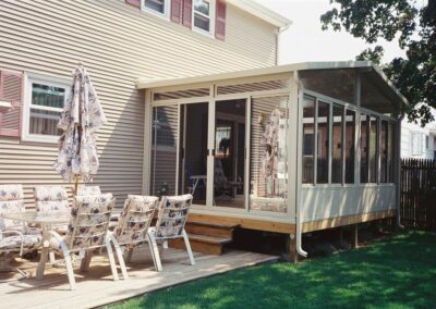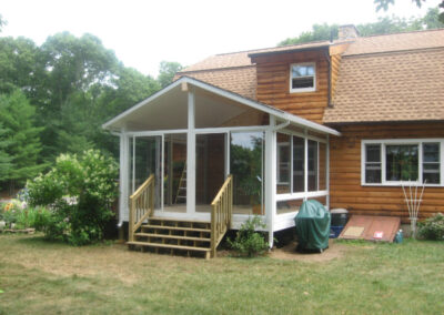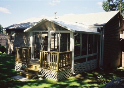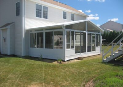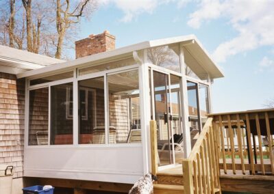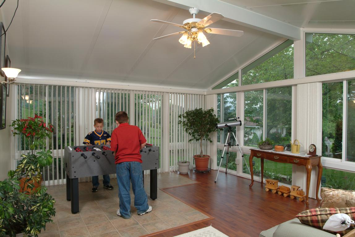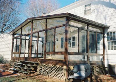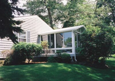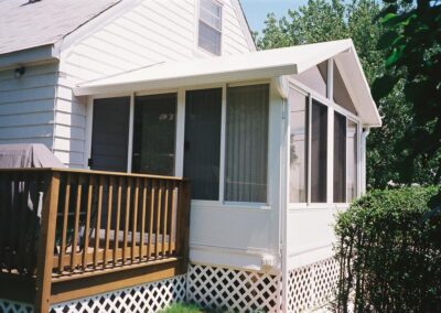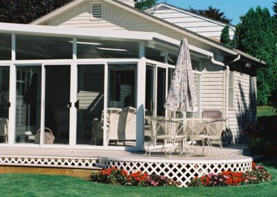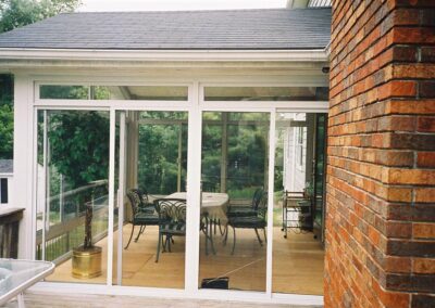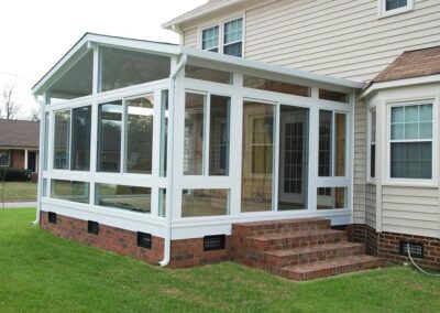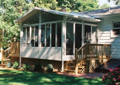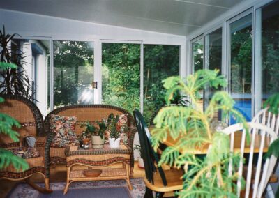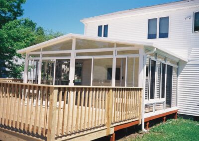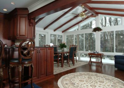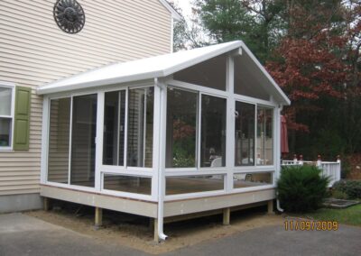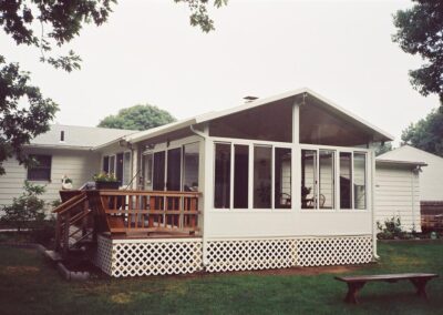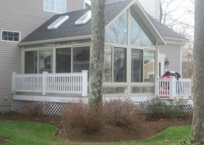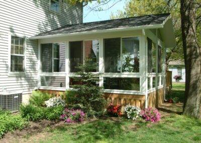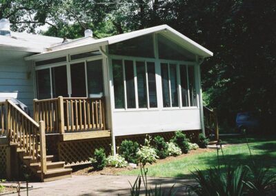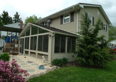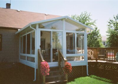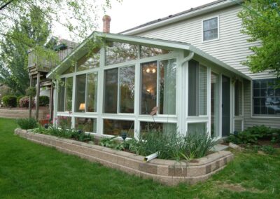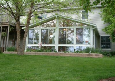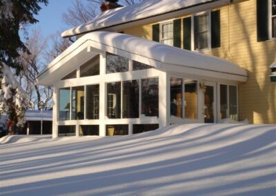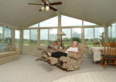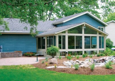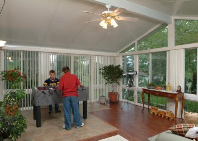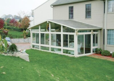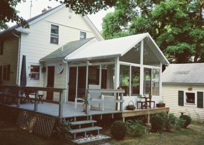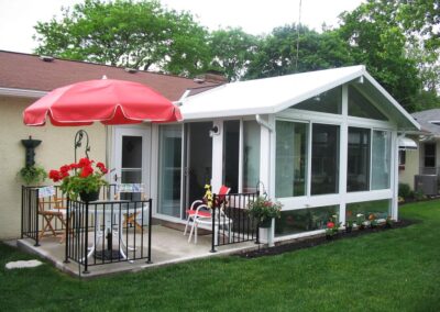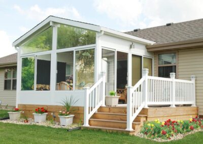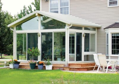 A gable-style sunroom adds elegance, space, and year-round enjoyment to a home by blending indoor comfort with outdoor beauty. Its high, vaulted ceiling creates an open, airy feel while maximizing natural light, making the space ideal for relaxation, entertaining, or even a home office. The steep roof design improves insulation and allows for better ventilation, enhancing energy efficiency and comfort in all seasons.