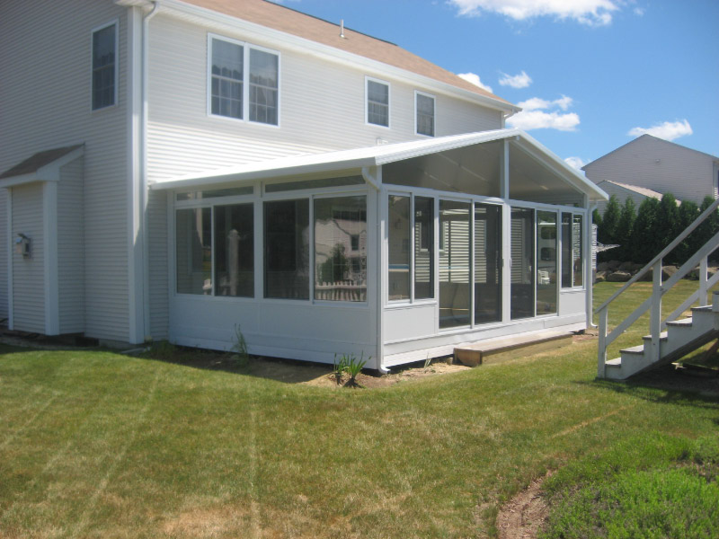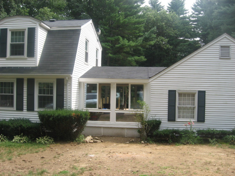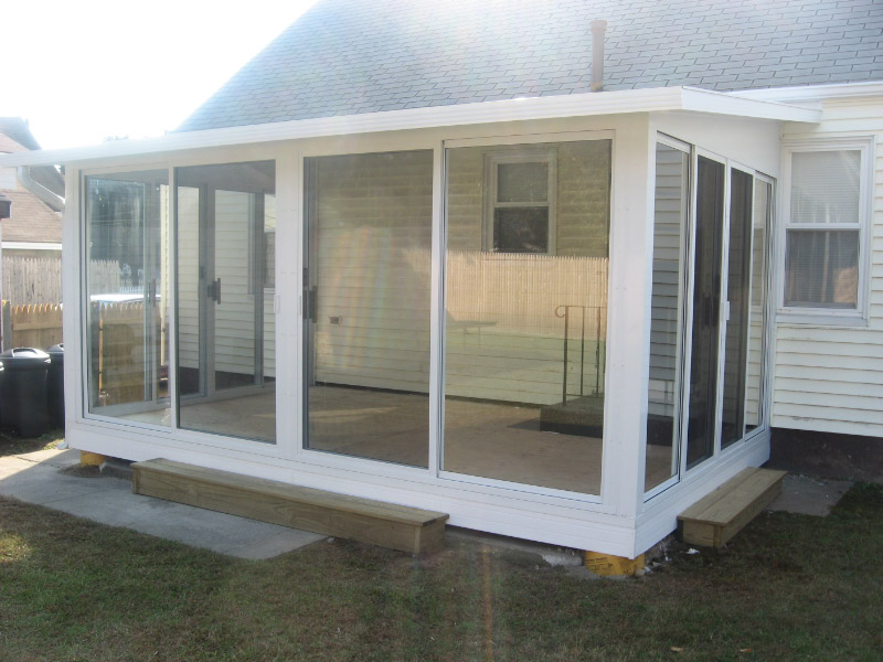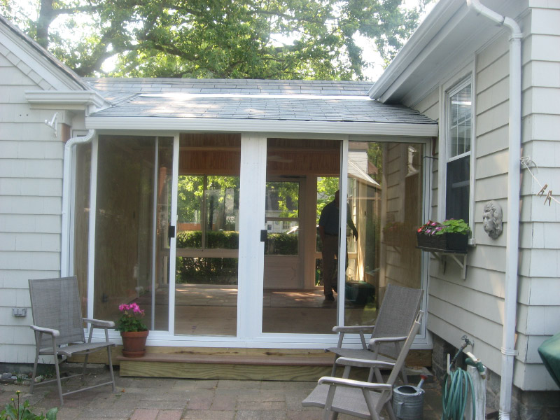 Screen Porch between house and garage changed into an All Season Enclosure.