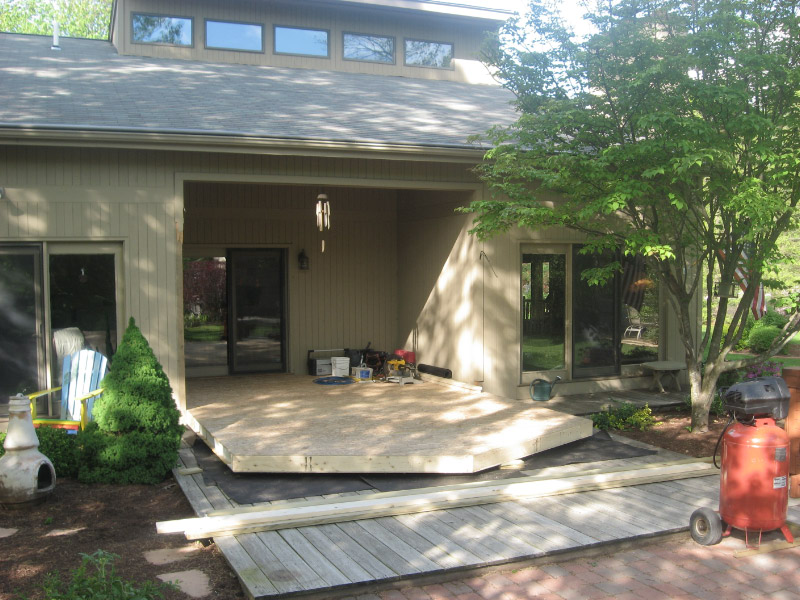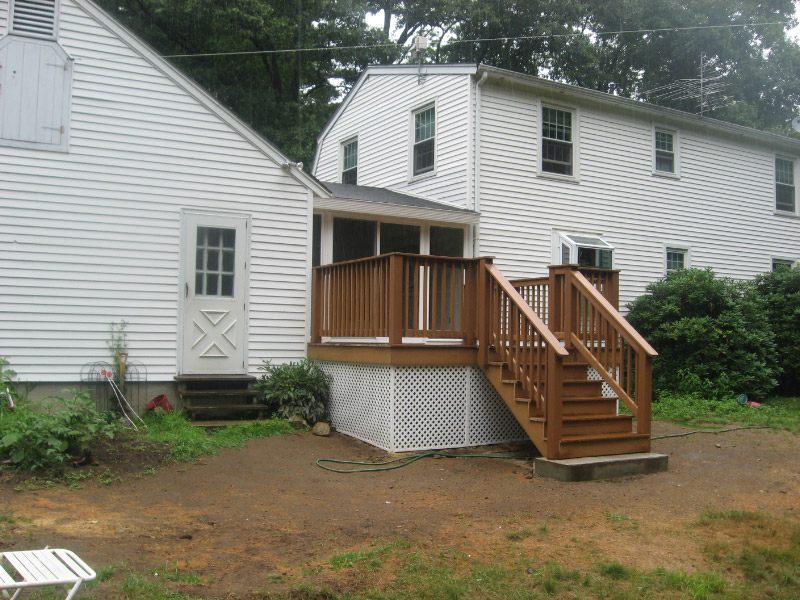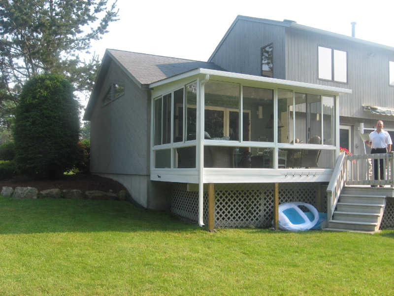 New Sunroom built after modifying the deck and relocating the stairs and rails for better function.