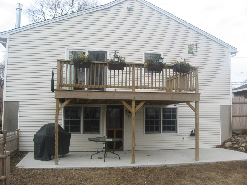 Modified existing deck and added Patio Room to a Log Cabin house.